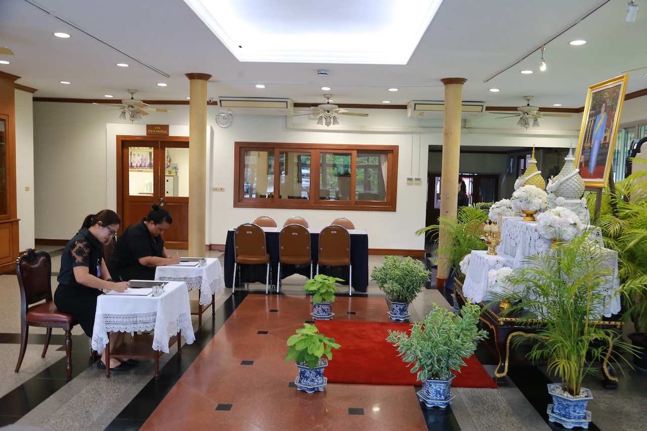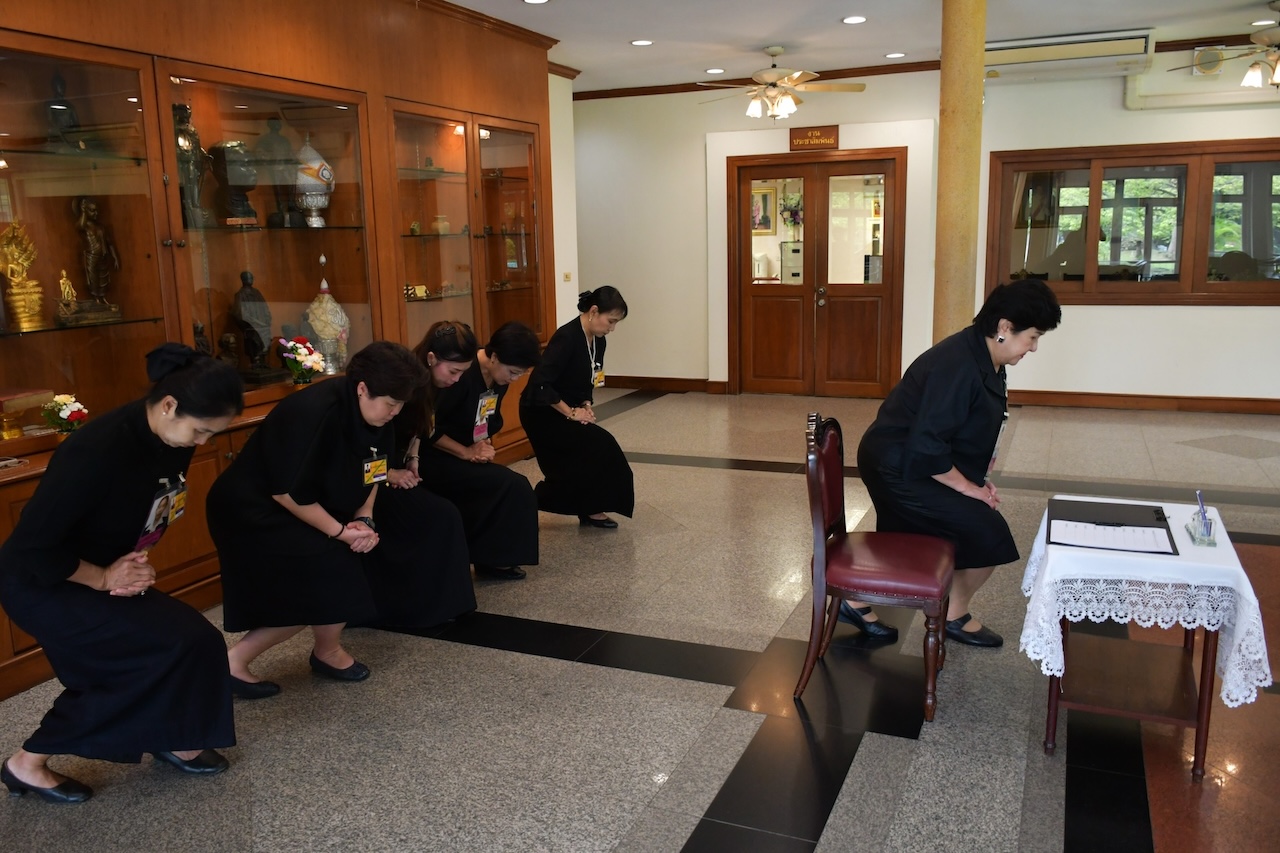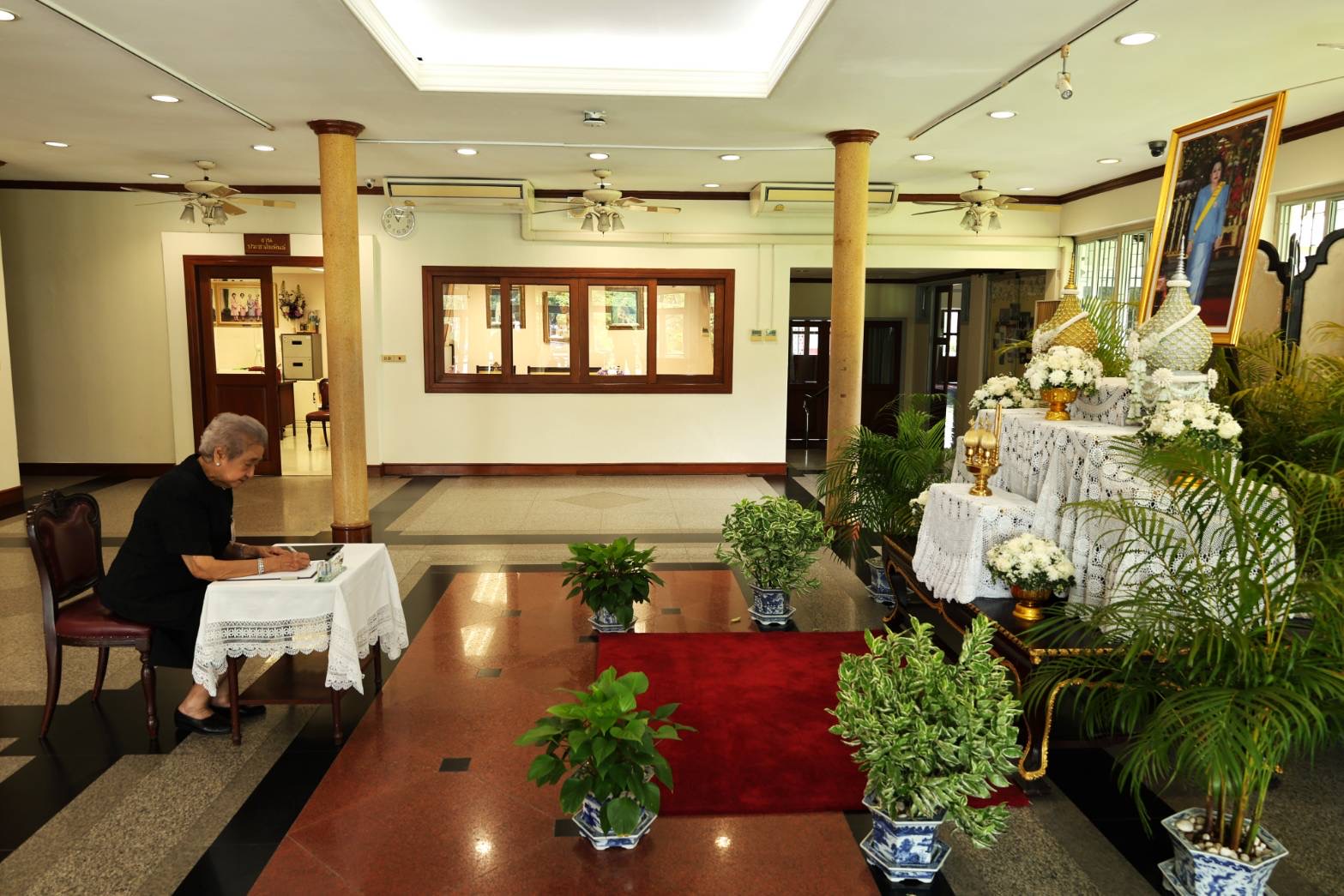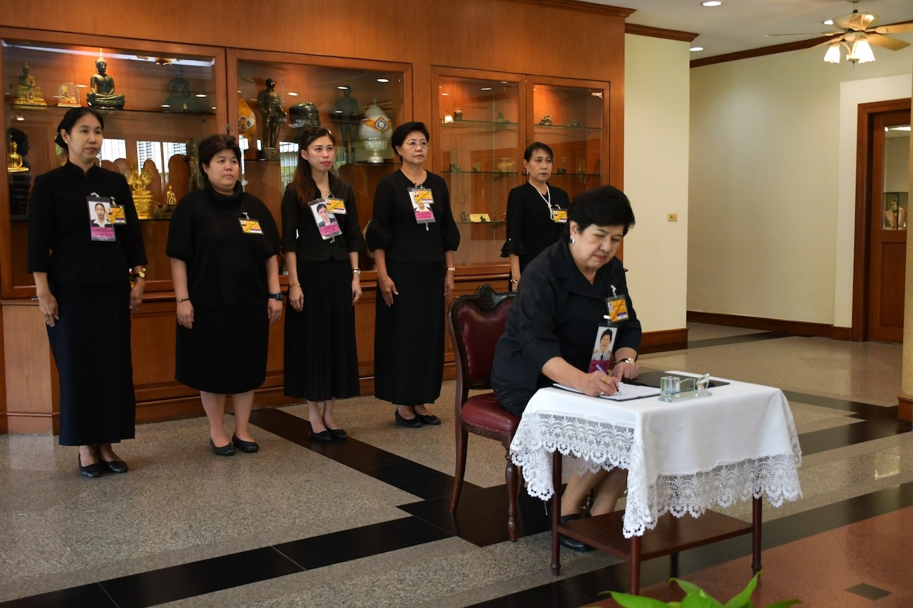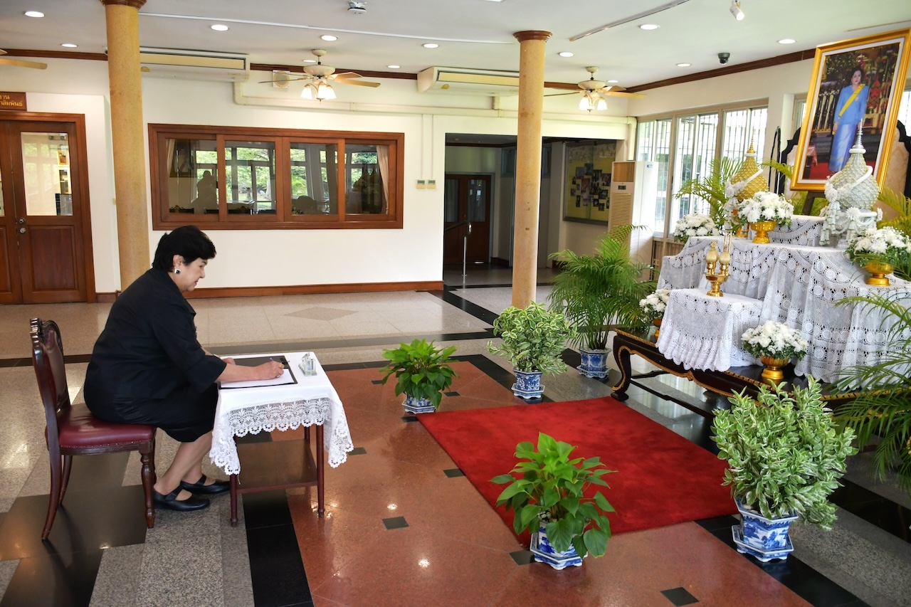 ผู้ช่วยศาสตราจารย์ ดร.ยุวดี นาคะผดุงรัตน์ ผู้จัดการและผู้อำนวยการโรงเรียนจิตรลดา นำคณะครู นักเรียน ผู้ปกครองและพนักงานโรงเรียนจิตรลดาลงนามถวายความอาลัย สมเด็จพระนางเจ้าสิริกิติ์ พระบรมราชินีนาถ พระบรมราชชนนีพันปีหลวง ณ ศาลาผกาภิรมย์ โรงเรียนจิตรลดา ในการนี้ท่านผู้หญิงอังกาบ บุณยัษฐิติ ได้มาร่วมลงนามด้วย