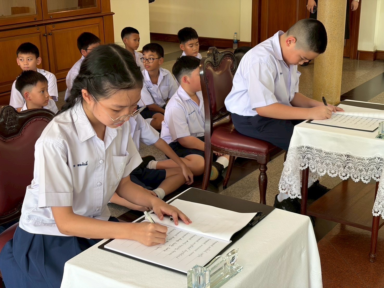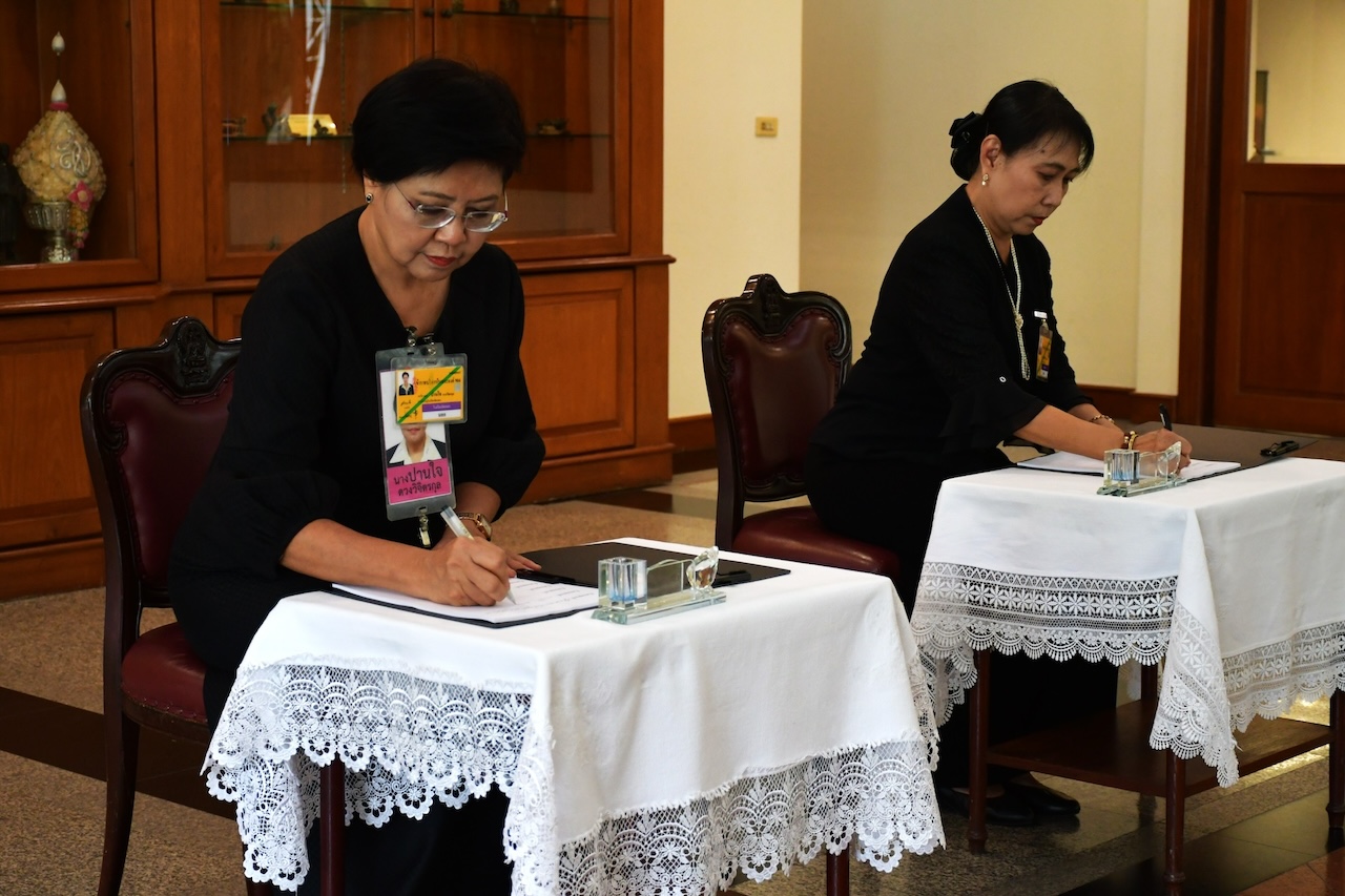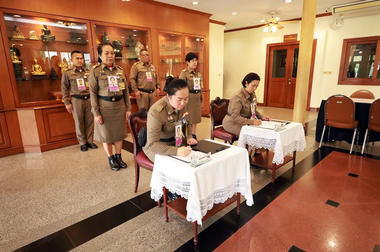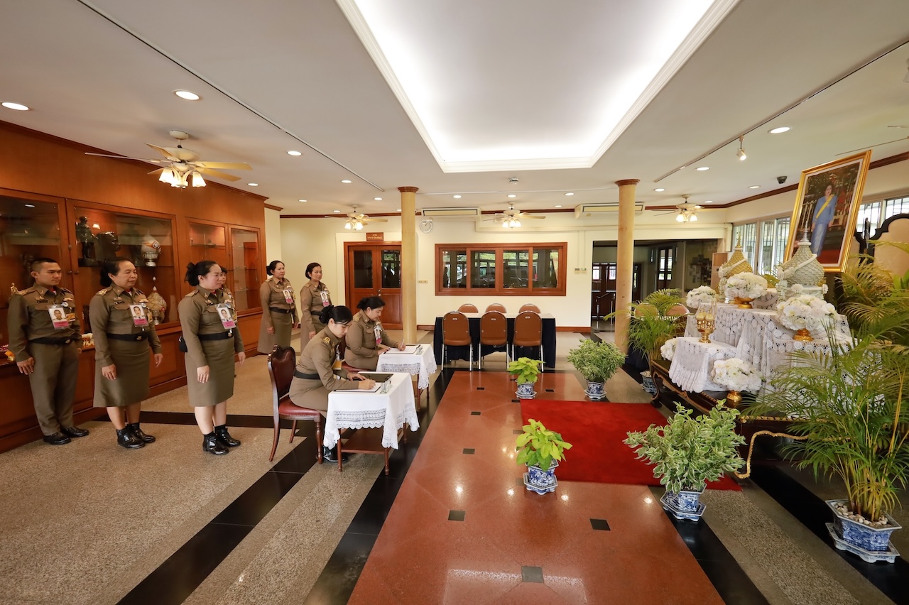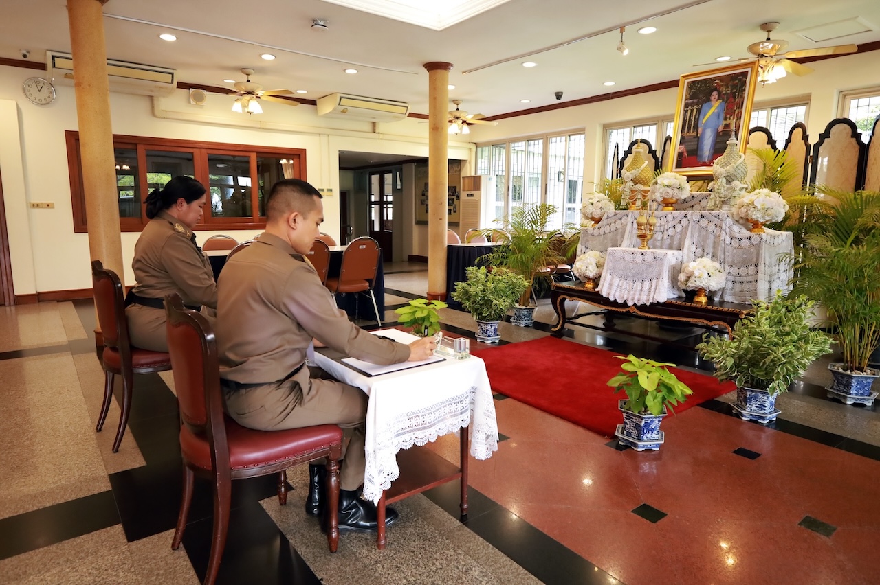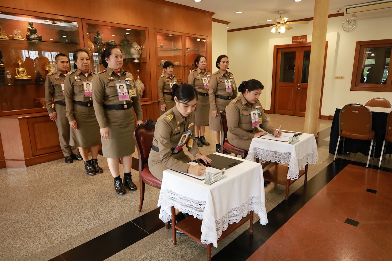 ผู้ช่วยศาสตราจารย์ ดร.ยุวดี นาคะผดุงรัตน์ ผู้จัดการและผู้อำนวยการโรงเรียนจิตรลดา นำคณะครู นักเรียน ผู้ปกครองและพนักงานโรงเรียนจิตรลดาลงนามถวายความอาลัย สมเด็จพระนางเจ้าสิริกิติ์ พระบรมราชินีนาถ พระบรมราชชนนีพันปีหลวง ณ ศาลาผกาภิรมย์ โรงเรียนจิตรลดา ในการนี้ท่านผู้หญิงอังกาบ บุณยัษฐิติ ได้มาร่วมลงนามด้วย