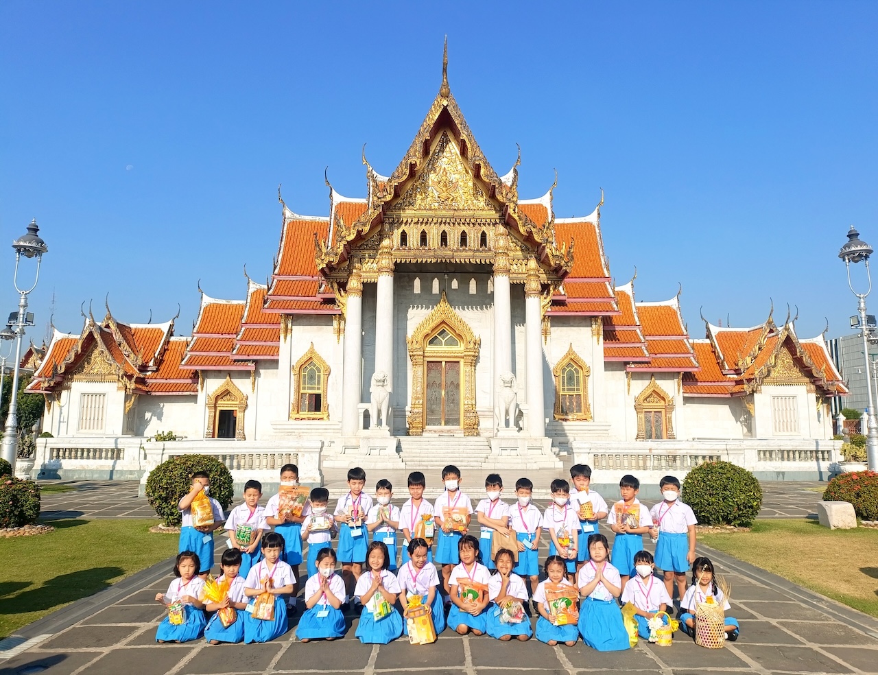 นักเรียนระดับอนุบาล 3 ได้ร่วมกิจกรรมเที่ยววัดชมวัง ทัศนศึกษา ณ วัดเบญจมบพิตรดุสิตวนารามราชวรวิหาร เมื่อวันที่ 6, 8 และ 12 มกราคม พ.ศ. 2569 เพื่อให้นักเรียนได้รับประสบการณ์ตรงจากการเรียนรู้นอกห้องเรียน และการปลูกฝังคุณธรรม จริยธรรมให้แก่นักเรียน โดยนักเรียนได้ร่วมทำกิจกรรมไหว้พระ ทำบุญถวายสังฆทาน-ไทยธรรม ได้เรียนรู้ประวัติ ความเป็นมา ความสำคัญ ศิลปวัฒนธรรมไทยที่งดงามของพระอุโบสถ พระระเบียง และการร่วมกิจกรรมเดินชมสถานที่ต่างๆภายในบริเวณวัดโดยรอบท่ามกลางบรรยากาศที่เงียบสงบ ร่มรื่น อันเป็นแหล่งการเรียนรู้ทางวัฒนธรรมและศาสนาที่สำคัญของชุมชน