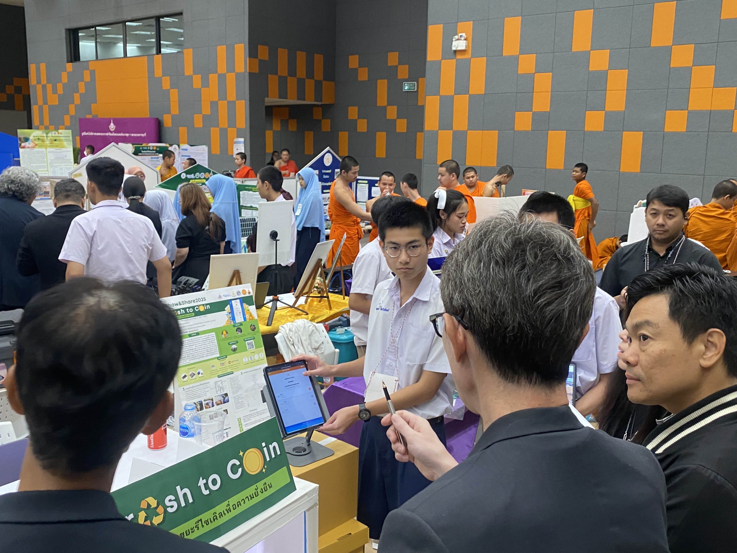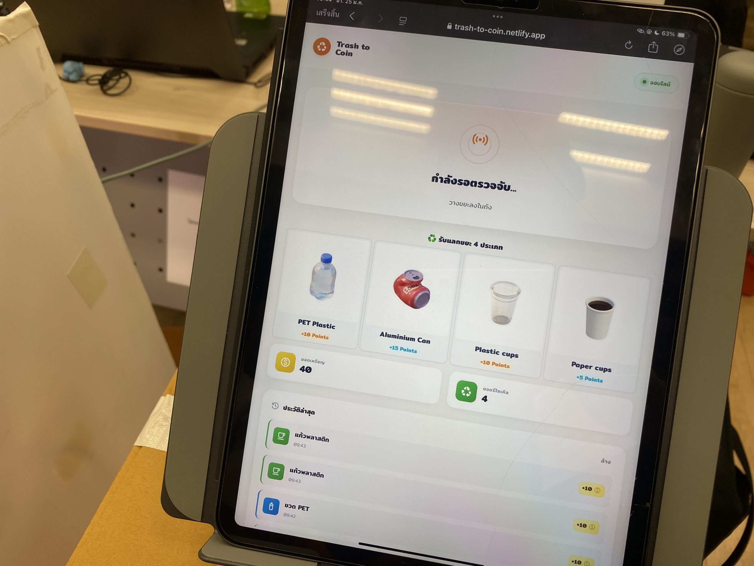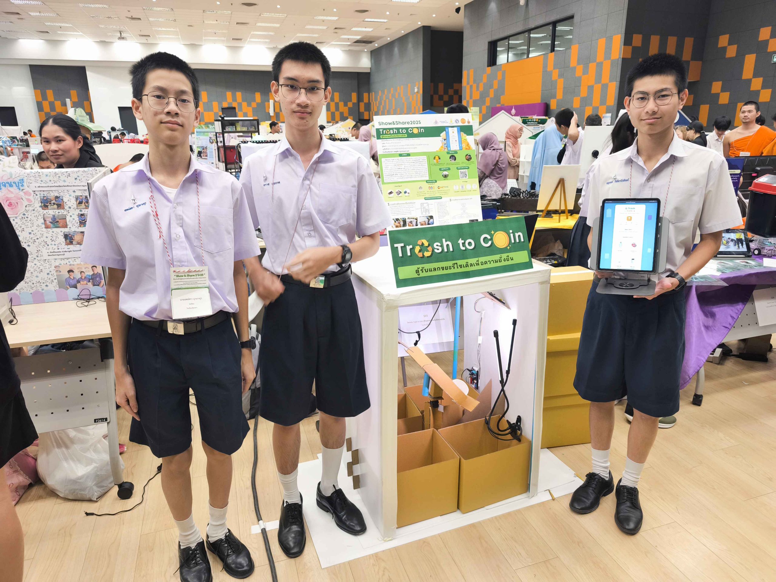 โครงงานที่ส่งเข้าประกวดมีชื่อว่า “Trash to Coin: ตู้รับแลกขยะรีไซเคิลเพื่อความยั่งยืน” เป็นการพัฒนาตู้รับแลกขยะรีไซเคิลต้นแบบที่สามารถรองรับการคัดแยกขยะรีไซเคิลได้ 4 ประเภท โดยใช้เทคโนโลยีปัญญาประดิษฐ์ (AI: Image Classification) ในการจำแนกประเภทขยะ และเชื่อมต่อกับ Web Application เพื่อสร้างแรงจูงใจและส่งเสริมพฤติกรรมการคัดแยกขยะอย่างเหมาะสมให้แก่ผู้ใช้งาน
