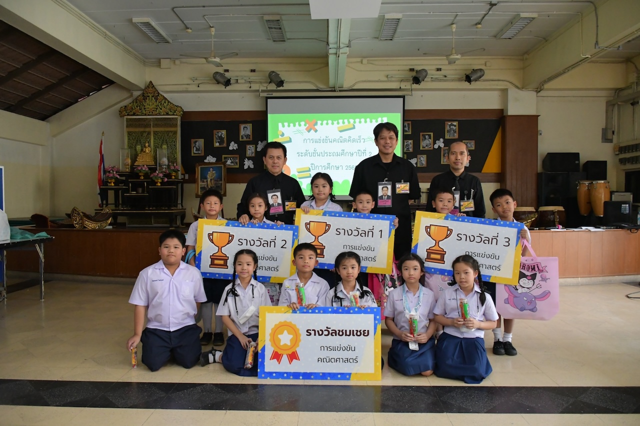 กิจกรรมการแข่งขันคณิตคิดเร็วจัดขึ้นเพื่อให้นักเรียนที่มีความสามารถทางด้านคณิตศาสตร์ได้แสดงความสามารถบนเวทีโดยครูกลุ่มสาระการเรียนรู้คณิตศาสตร์ในแต่ละระดับชั้นสอบคัดเลือกเพื่อหาตัวแทนผู้เข้าแข่งขันรอบชิงชนะเลิศ ห้องละ 2 ทีม ทีมละ 2 คน โดยจัดการแข่งขันเป็น 3 รอบ รอบที่ 1 โจทย์การคิดและการแก้ปัญหาทางคณิตศาสตร์ รอบที่ 2 โจทย์คำนวณหาตัวไม่ทราบค่า รอบที่ 3 โจทย์คำนวณ ซึ่งจัดการแข่งขันในวันพุธที่ 14 มกราคม พ.ศ.2569 ผลการแข่งขันคณิตคิดเร็ว ประจำปีการศึกษา 2568 เป็นดังนี้