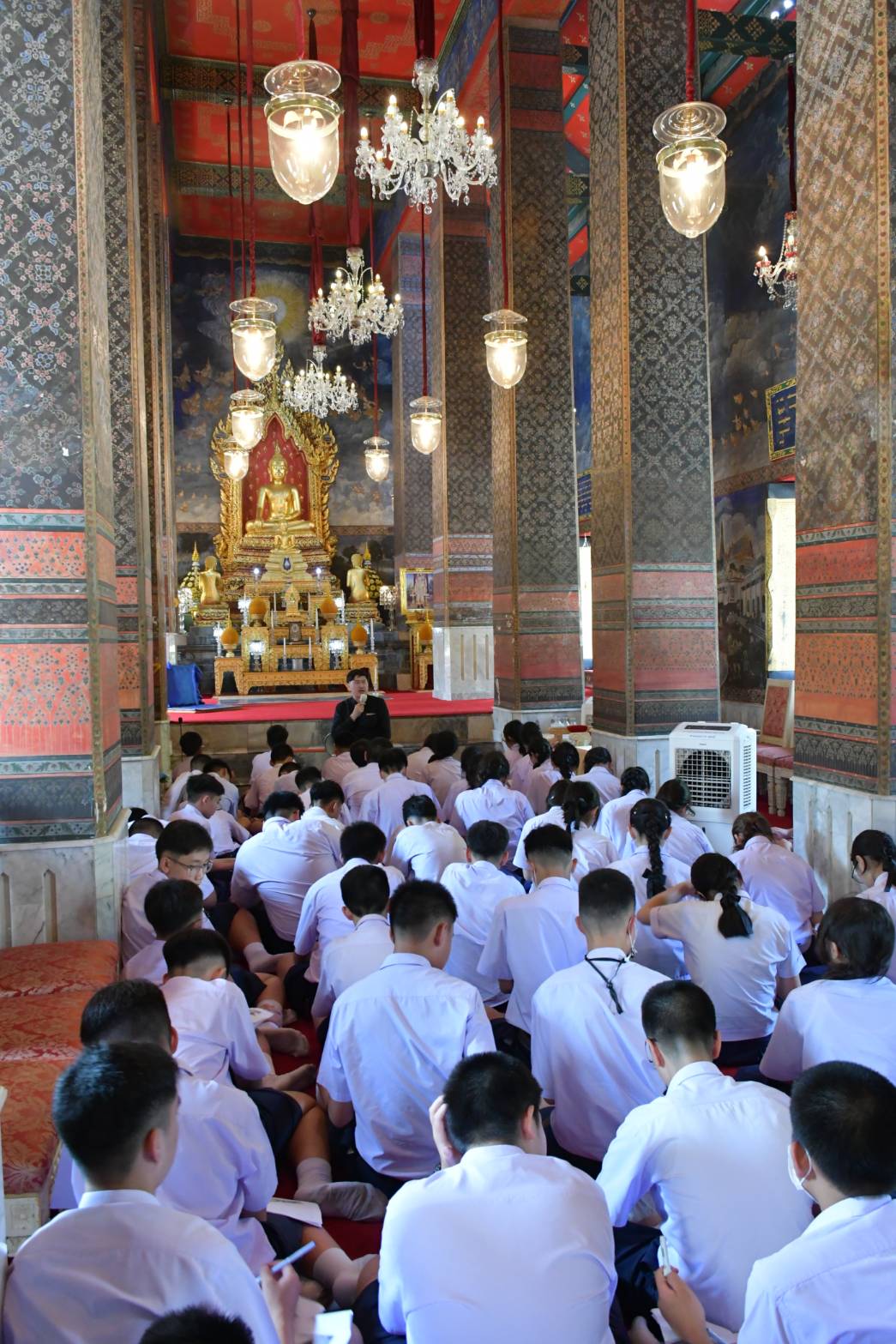 ในการนี้พระเดชพระคุณพระเทพมงคลโสภณ เจ้าอาวาสวัดเสนาสนารามราชวรวิหาร ได้เมตตาอนุเคราะห์จัดอาหารกลางวันและเอื้อเฟื้อสถานที่ในการรับประทานอาหารกลางวันแก่คณะครูและนักเรียนอีกด้วย