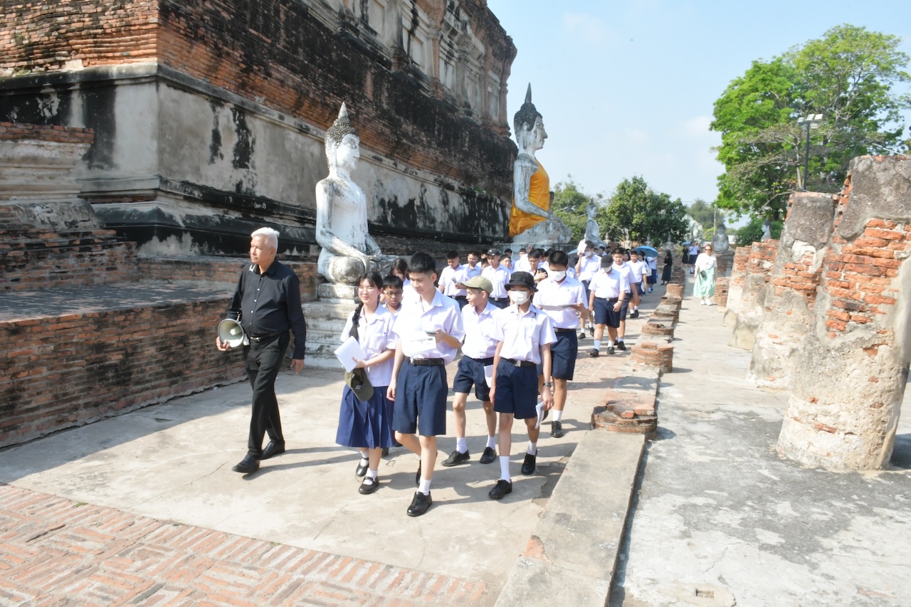 วันศุกร์ที่ ๖ กุมภาพันธ์ ๒๕๖๙ กลุ่มสาระการเรียนรู้สังคมศึกษา ศาสนาและวัฒนธรรม ระดับมัธยมศึกษา จัดกิจกรรมนำนักเรียนชั้นมัธยมศึกษาปีที่ ๒ ทัศนศึกษา ณ จังหวัดพระนครศรีอยุธยา โดยนักเรียนได้เข้าชมและรับฟังการบรรยายเกี่ยวกับสถานที่สำคัญทางประวัติศาสตร์ อาทิ วัดพุทไธศวรรย์ วัดพนัญเชิง วัดใหญ่ชัยมงคล พิพิธภัณฑ์เจ้าสามพระยา วัดเสนาสนาราม วัดหน้าพระเมรุ และวัดไชยวัฒนาราม โดยมีอาจารย์เผ่าทอง ทองเจือ อาจารย์วัลลภ รุจิขจร อาจารย์วิชาอารยธรรมไทย สถาบันเทคโนโลยีพระจอมเกล้าเจ้าคุณทหารลาดกระบัง และอาจารย์ปวินญาพัฒน์ วรพันธ์ อาจารย์คณะสังคมศาสตร์ มหาวิทยาลัยศรีนครินทรวิโรฒ มาเป็นวิทยากรให้ความรู้ เพื่อให้นักเรียนได้รับประสบการณ์ตรงจากการศึกษาประวัติศาสตร์และเห็นคุณค่าของศิลปวัฒนธรรมสมัยอยุธยา