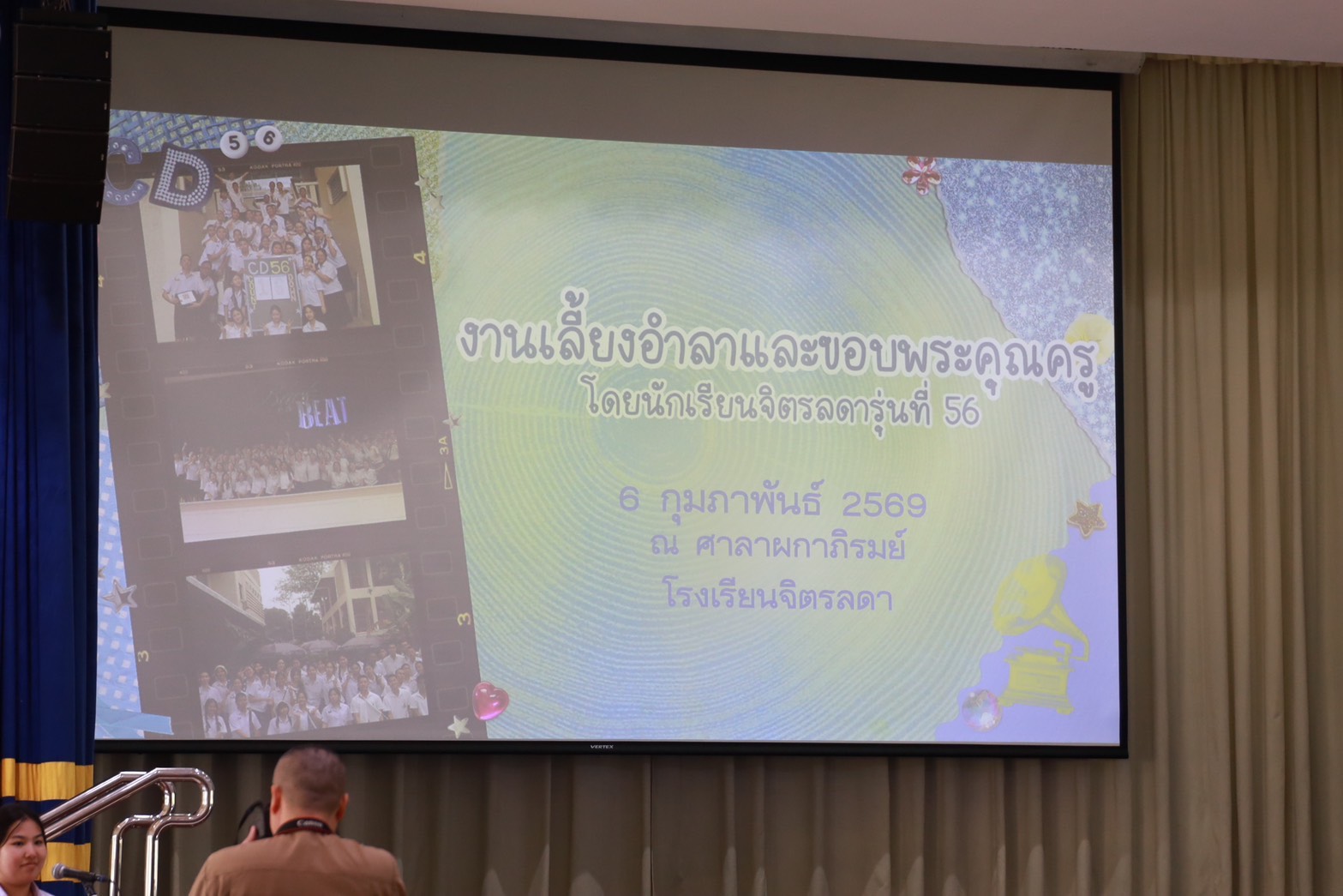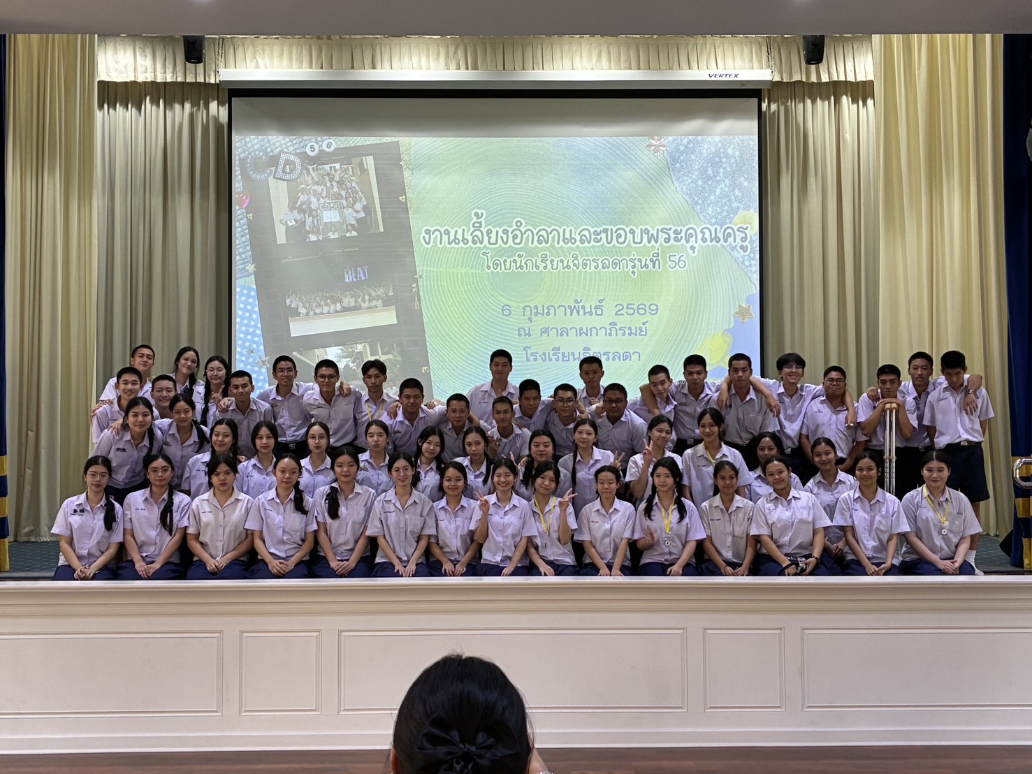 วันศุกร์ที่ 6 กุมภาพันธ์ 2569 นักเรียนชั้นมัธยมศึกษาปีที่ 6 ปีการศึกษา 2568 นักเรียนจิตรลดารุ่น 56 เยี่ยมชมพิพิธภัณฑ์และหอประวัติของโรงเรียนจิตรลดา และจัดงานเลี้ยงอำลาและขอบพระคุณครู เนื่องในโอกาสจบการศึกษาชั้นมัธยมศึกษาตอนปลาย เวลา 14.30 – 16.30 น. ณ ศาลาผกาภิรมย์ กิจกรรมประกอบด้วยการกราบขอพรจาก ผู้ช่วยศาสตราจารย์ ดร.ยุวดี นาคะผดุงรัตน์ ผู้จัดการและผู้อำนวยการโรงเรียนจิตรลดา การชมวิดีทัศน์ความทรงจำในรั้วจิตรลดา การแสดงของนักเรียน การมอบของที่ระลึกและร้องเพลงครู