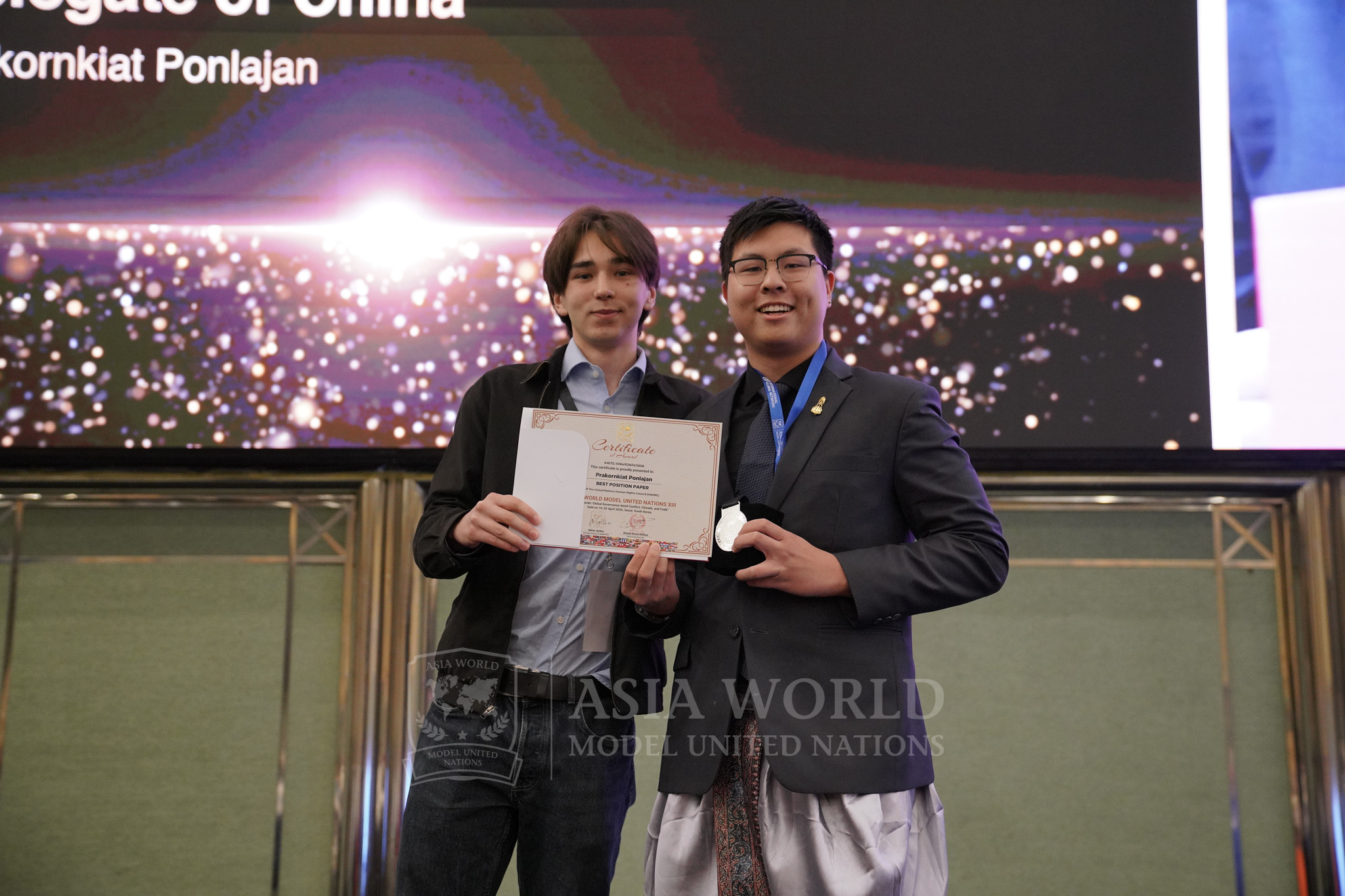 ทั้งนี้ หลังจากเข้าร่วมกิจกรรม นายประกรเกียรติ พลจันทร์ ได้รับเหรียญรางวัล Best Position Paper (รางวัลเอกสารจุดยืนยอดเยี่ยม) และนายธนพล พิษณุวงศ์ ได้รับรางวัล Best Dress Award (รางวัลแต่งกายยอดเยี่ยม)