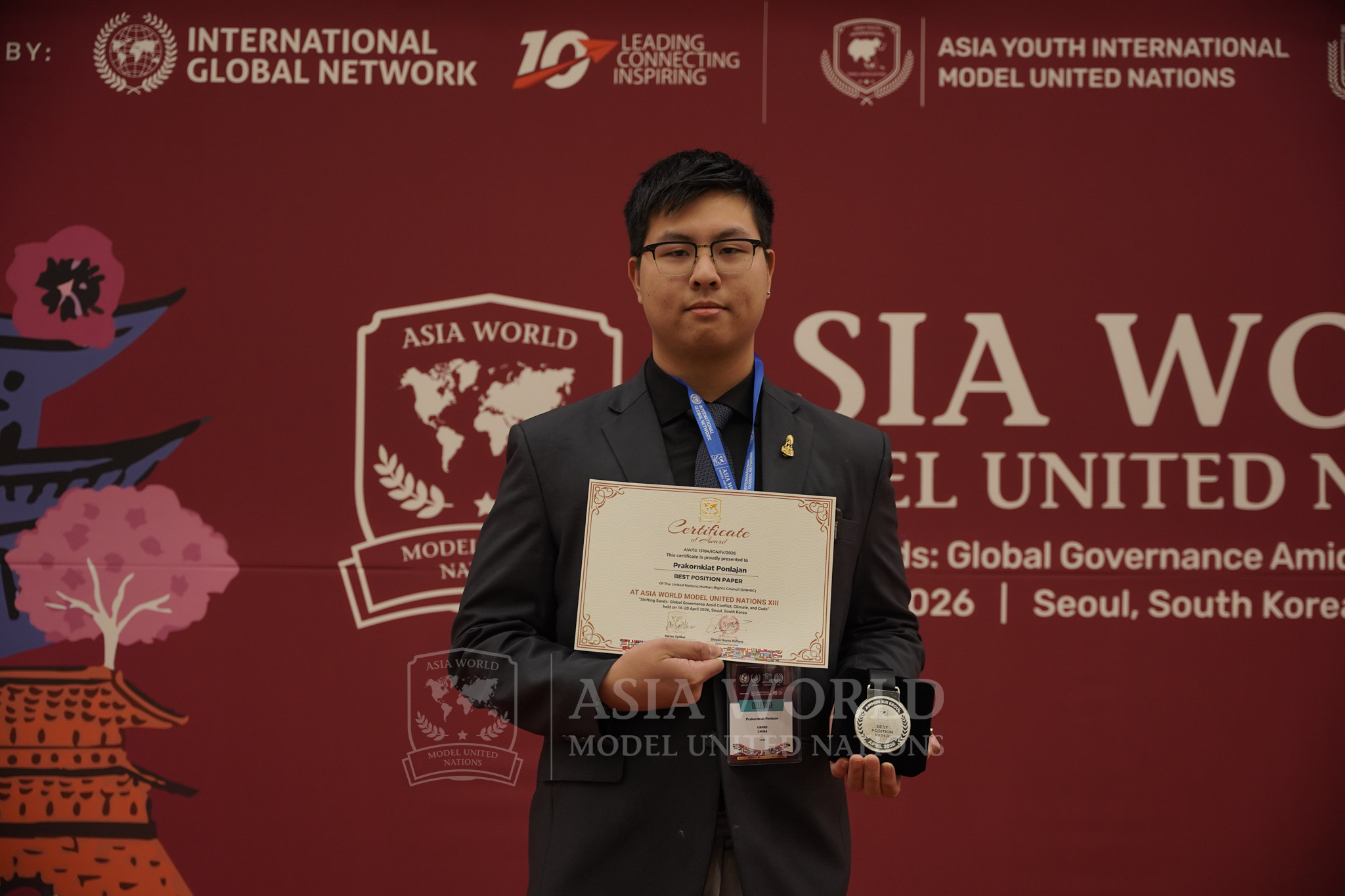 วันที่ 16-20 เมษายน 2569 นายประกรเกียรติ พลจันทร์ และนายธนพล พิษณุวงศ์ นักเรียนชั้นมัธยมศึกษาปีที่ 5/2 ได้เดินทางไปร่วมกิจกรรม Asia World Model United Nations (AWMUN) XIII ซึ่งจัดขึ้นโดย International Global Network ณ กรุงโซล สาธารณรัฐเกาหลี